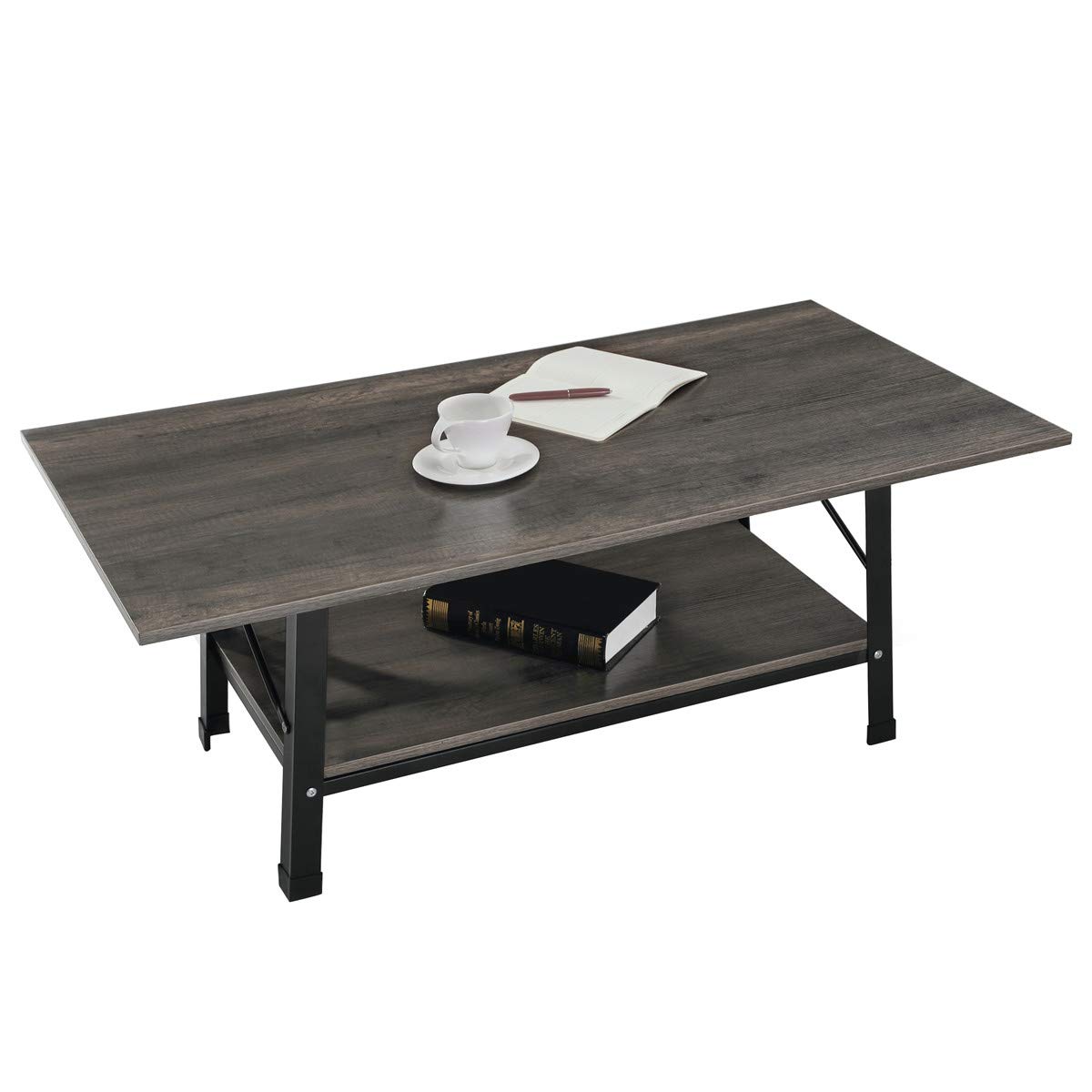 Vasagle coffee table with steel frame and mesh storage shelf, 41.
